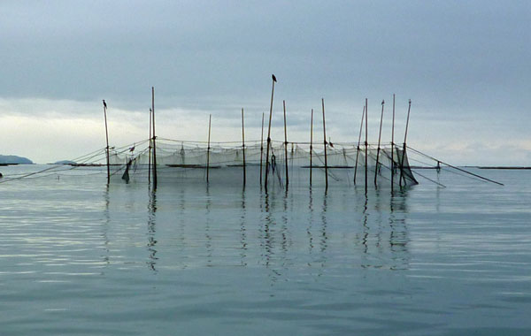 内戸(島の影)ではあまり大きな波はできないので、網はそのまま海に